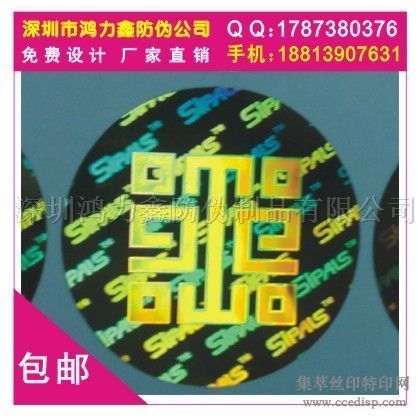 深圳鸿力鑫防伪制品有限公司是一家印刷:镭射激光全息防伪商标、800电码防伪商标、烫印 防伪商标、超线防伪商标、2D、3D立体防伪品的综合 性防伪印刷高科技企业。