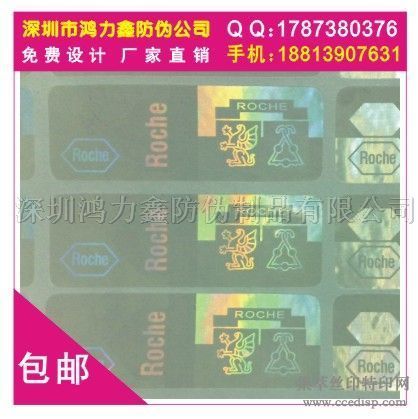 深圳鸿力鑫防伪制品有限公司是一家印刷:镭射激光全息防伪商标、800电码防伪商标、烫印 防伪商标、超线防伪商标、2D、3D立体防伪品的综合 性防伪印刷高科技企业。 公司内部从电脑图像商标设计激光制版到电眼跟 踪自动模切的全封闭生产。防伪技术包括:多层多色、 立体浮动、莫尔加密、光刻效果、组合全息、激光解码、干涉条纹、旋转光圈、扩散光芒、 等多种高难度制版技术,同时为客户精心设计的防伪 图像,使得我们的防伪产品具有综合防伪、美化包装和增加产品附加值的多种功效。本公司将以科技防伪创新防伪的经营理念为各界企业的产品出一份力量。 供应:激光防伪商标、电码防伪商标、镭射防伪商标、全息标签、2D/3D全息图、防伪印刷、防伪标志、防伪标签、OPP透明镭射标贴、激光标、镭射标、易碎标、包装防伪